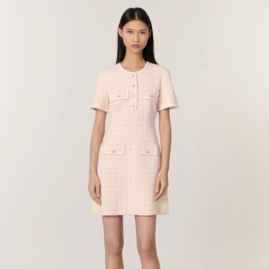 This dress gives off vintage-chic vibes with its tweed texture and refined silhouette—perfect for brunch or garden parties. Loved by celebrity Li Yitong.