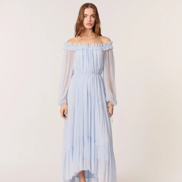 Effortlessly romantic, this off-shoulder chiffon dress whispers summer evening vibes. A feel-good pick for warm nights.