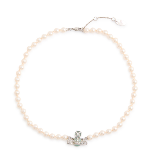 A delicate necklace featuring a pearl-accented orb pendant—subtle yet luxurious.